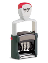 Selbsteinfärbender Datumstempel mit massivem Metallkern, integriertem Stempelkissen und Ziffernbändern. Je nach